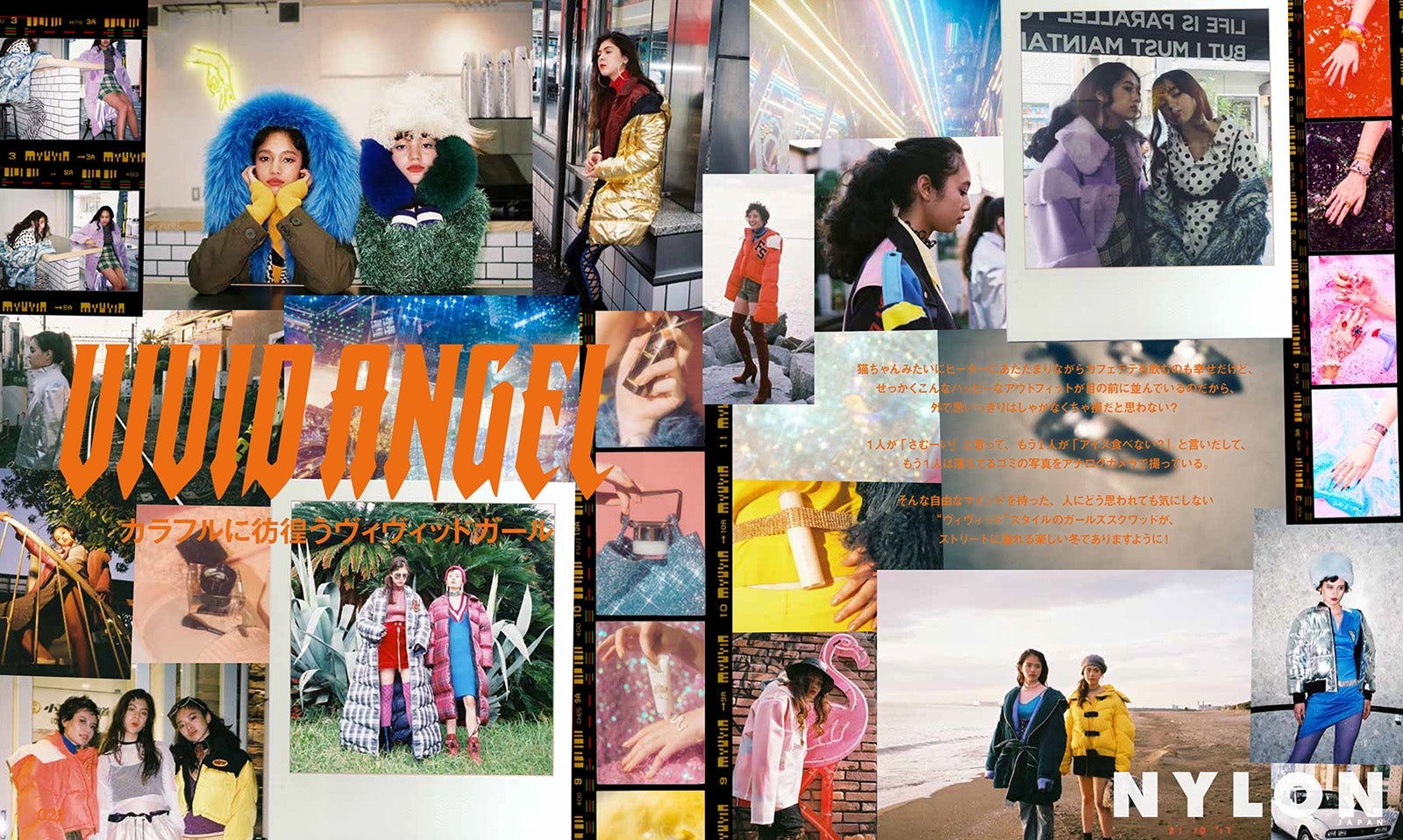 今回、スペイン人フォトグラファー・CHUS を迎え、強いコントラストで遊んだカバーストーリー。他では見られない中条あやみの表情がたっぷりに詰まった魅惑のワールドを構築。普段の私服では落ち着いたカラーが多いという中条も、撮影後に行ったインタビューでは、「毎回、ナイロンの撮影で派手なお洋服着させてもらうのを楽しみにしているんですが、今までとはまた違 う感じの派手なお洋服を着させてもらえて嬉しかったです!」「ナイロンの撮影の度に、ヴィヴィッドで明るい色をもっと着なきゃなってすごく思います」などと、この冬注目しているファッションやメイクの話から、1月25日公開の映画「覆面系ノイズ」の見所までたっぷりと語る。