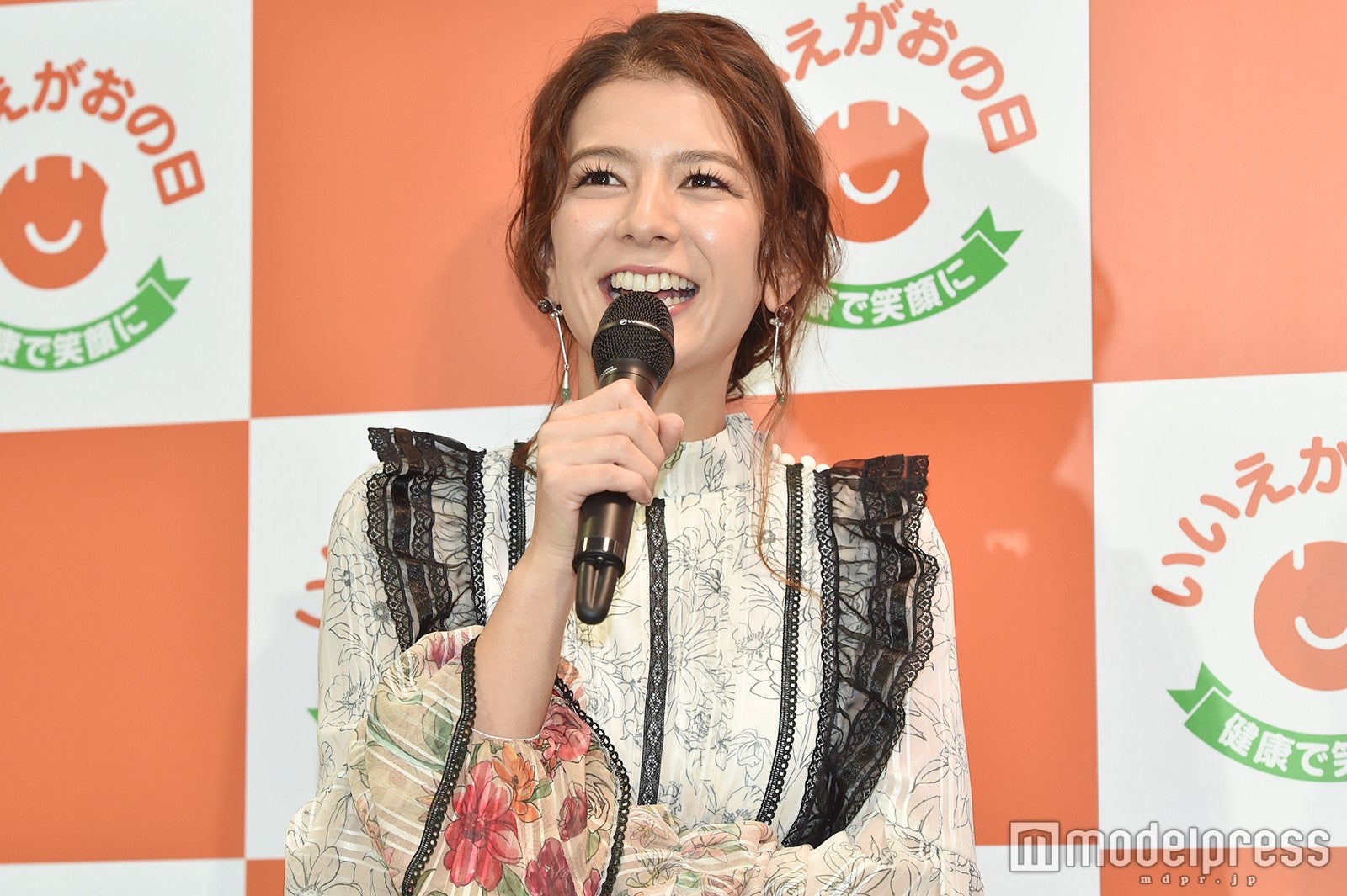 いいえがおの日(11月25日)は、“健康で笑顔でいること”の大切さをたくさんの人に知ってもらうために、『11(いい)』月『25(にっこり)』日の語呂合わせから、熊本の健康食品会社が制定した記念日。いいえがおの日制定応援隊長に就任したスザンヌは、笑顔の秘訣を尋ねられると「秘訣はムリをしてでも笑うこと」とコメントして会場を沸かせ、「だんだん“何で笑っているんだろう、私…”ってなって、自分に自分が面白くなってくる瞬間があるんです。好きな言葉で『つらいときこそ笑顔で』っていうのがあって、どんなときも笑うようにしようって思っていたら、笑顔が癖付いていつも笑うようになりました」と説明。