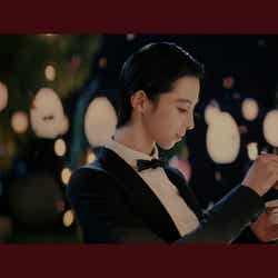 また、新CMで男装を初披露している中条は「1人2役だったんですけど、男装は自分でもどう映っているか心配していたんですけど、すごく素敵な画に撮ってくださって、(女性役の自分が、男性役の自分に)メロメロしているなと思いました」とホッとした様子。「男役ということでタキシードを着させていただいて、髪型もまとめて、新しい気持ちになれました。男性の方の気持ちになって演じてみました」と感想を語った。さらに「男性役を撮影しているときに、女性役に別の方が入ってくださったんですけど、“守ってあげなきゃ”みたいな気持ちで、自然と男性の気持ちになってしまって(笑)、その日は雨も降って肌寒かったんですけど、“コート着なくて大丈夫かな。貸してあげなきゃ”って気持ちになりました」と回顧。男性役の役作りについては宝塚歌劇団の男役を参考にしたという。