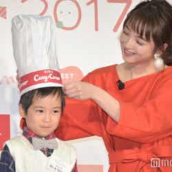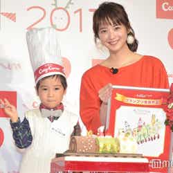 この日、洋菓子メーカーが小学生以下の子どもを対象に行った「夢のクリスマスケーキコンテスト2017」でグランプリを受賞し、自身の作品が実際に商品化されることになった齋藤立季くんも登壇。表彰式では、佐々木がパティシエ帽と記念盾を贈呈した。そして、立季くんのケーキもステージに登場。多く報道陣を前に緊張する立季くんに、佐々木は姿勢を低くして顔を近づけて声をかけたり、フォローしたりと優しく見守っていた。