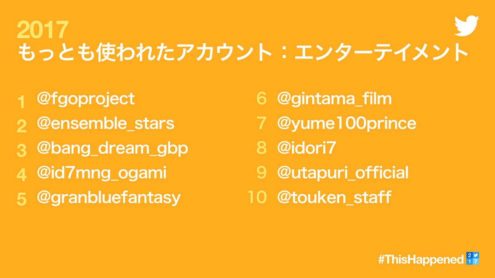 「もっとも使われたハッシュタグ:役者部門」(Twitter社調べ)