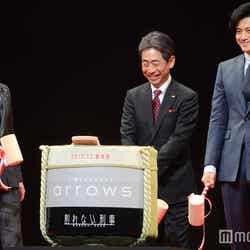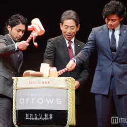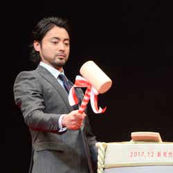 この日はほかに、レッドカーペットが敷かれた会場に小栗と山田が登場。新しいCMもお披露目されたほか、鏡割りも行なわれた。