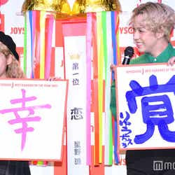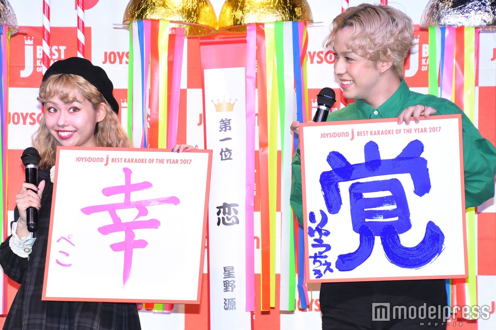 さらに、この1年を“幸”という漢字で表したぺこは、「今年はすごいたくさんの方に『おめでとう』と言っていただいて幸せになった。9月には結婚式を挙げて、先日は新婚旅行にも行かせてもらった。りゅうちぇるや、皆さんのおかげで幸せな1年でした」と満面の笑み。大ブレイクした2016年は多忙すぎて「記憶がない」と言っていたりゅうちぇるは、「2017年はプライベートの時間をたくさん作れた。結婚式も新婚旅行の思い出も作れたから記憶がある。楽しむことできたし、仕事もたくさん頑張れたので充実した年だった。いろんなことを覚えられた1年」と語った。