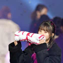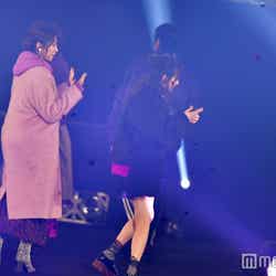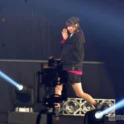 歓声に嬉しそうに笑顔でこたえながら歩き、ステージの最先端までくると顔を覆って“いないいないばあ~”を披露。いたずらっぽいキュートな仕草に会場はさらに沸き立った。