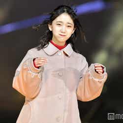 ステージ先端では、目元に手を両手を持ってきて口をとがらせ“えーん”と泣きマネのポーズ。演出の風でおでこが全開になると、すぐに頭を抱えて照れ、ファンから「可愛い~!」と歓声が飛んでいた。