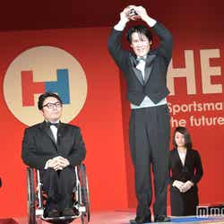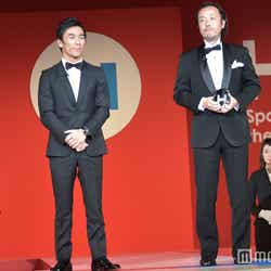 香取は、アワードを受賞した、年齢・性別・運動神経に関わらず、だれもが楽しめる新スポーツ、“ゆるスポーツ”を創るスポーツクリエイター集団「世界ゆるスポーツ協会」の澤田智洋氏にトロフィーを授与。自身も運動が苦手だったという澤田氏が「スポーツは誰もが一つのチームになれる、笑顔でまとまっていけるもの。スポーツを通して青臭く、世界平和を追求したい」と今後の活動への意気込みを語ると、香取は「背筋をピーンとするのも大事だと思いますが、ゆるーく始めることも僕は大好き。ゆるスポーツ、最高だと思います」と澤田氏の活動を称賛。