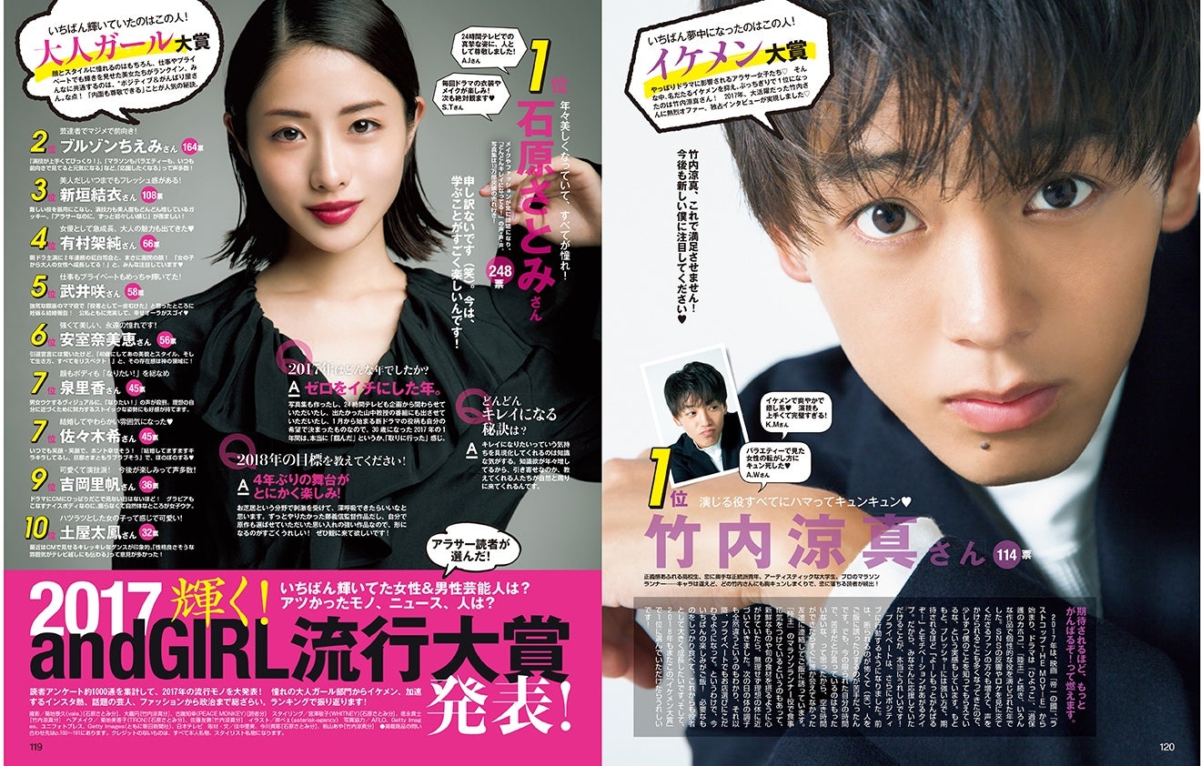 女優の石原さとみが12日発売の雑誌『andGIRL』1月号の表紙を飾った。
