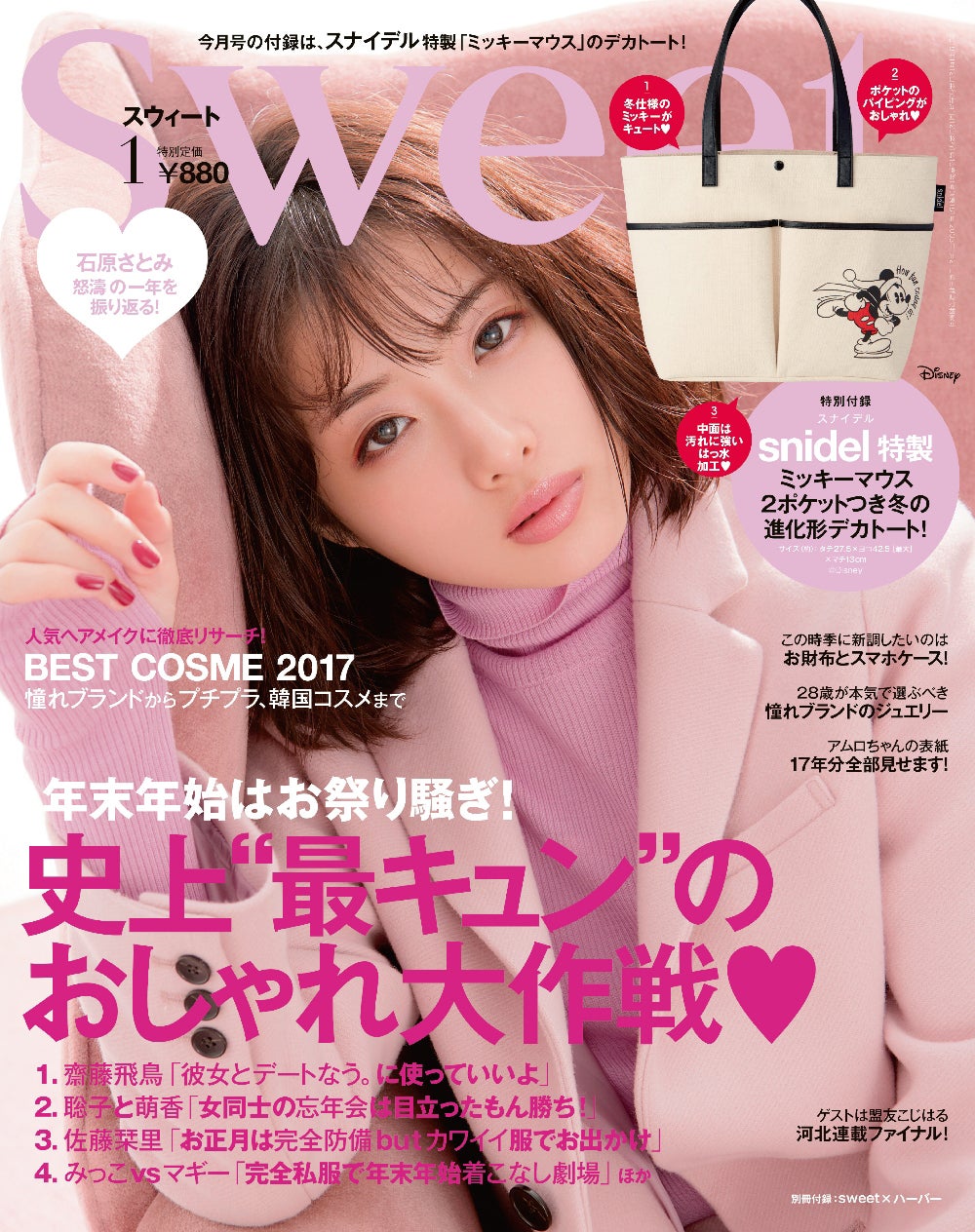 乃木坂46の齋藤飛鳥が、12日発売の雑誌『sweet』1月号に登場。モテファッションを披露している。