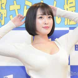 “日本一売れてるカラダ”忍野さら、谷間チラ見せワンピで登場 飛躍の1年振り返る「泣いたこともありました」