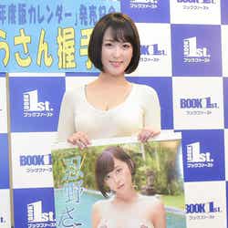 自身初のカレンダーのリリースに「ファンの方が1年間私と一緒に過ごしてくれると思うと嬉しいです」と笑顔の忍野は、同作のコンセプトを聞かれ「爽やかな感じ」と紹介。お気に入りには、5~6月のカットを挙げて「水着も小花柄で可愛いんですけど、1番は私の誕生日が6月なので(笑)」と無邪気に笑った。