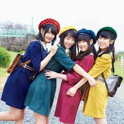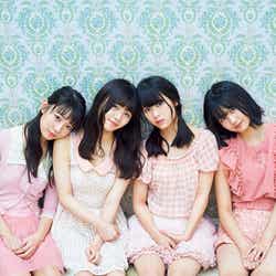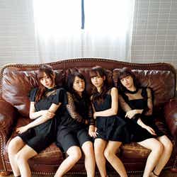 “3期生の美のカルテット”として紹介された4人。肩が空いた衣装で大人っぽい表情も見せているソロショットに加え、4人揃ってシャボン玉を楽しむ姿など、魅力たっぷりのグラビアとなった。