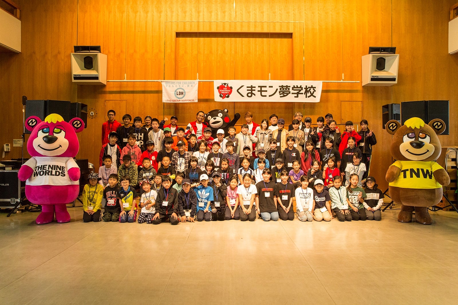 目標は2018年3月のくまモン誕生祭のステージに立つこと。 17日のダンスレッスン初日は、特別講師としてEXILE/EXILE THE SECONDから黒木、NESMITHも参加。さらには、黒木がプロデュースする九州発エンタテインメント・プロジェクト「THE NINE WORLDS」のキャラクターである、くまおと熊五郎に加え、くまモンと小山薫堂も参加し、復興支援曲でもあるEXILEの楽曲「Rising Sun」の振り付けを子どもたちへ丁寧に指導した。