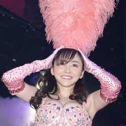 ショーガール就任の感想を問われると、「すごく楽しいですし、16年くらい東京に住んでますけど、これが東京なんだなっていう世界を味わわせていただきました」とニッコリ。参加を決めた理由については、「単純に楽しいところが大好きなので、グラビア以外の魅せ方で、もうちょっと広げて楽しむことができたらと思って」と明かした。