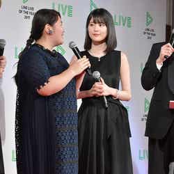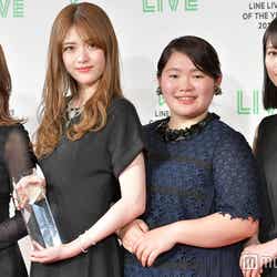 2017年にLINE LIVEで活躍したライブ配信者を発表する「LINE LIVE OF THE YEAR 2017」表彰式が21日、都内で開催され、乃木坂46の桜井玲香、松村沙友理、生田絵梨花、女優の富田望生や、E-girlsの楓、YURINOらが登壇した。