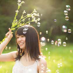 今回公開されたのは、花柄の水着を着た長濱が、カメラに向かってシャボン玉を吹きかけているショット。画面いっぱいに舞ったシャボン玉が夕陽に照らされて、ファンタジックな1枚となっている。写真集で挑戦した4着の水着のうち、最後に撮影されたというこのカット。最初は水着姿に照れを隠せなかった長濱も、このラスト水着カットではリラックスして自然体の笑顔を見せている。