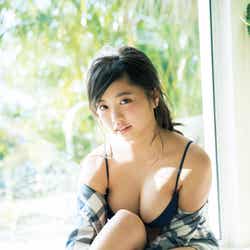 2017年のグラビア界の象徴と言っても過言ではないほどの活躍をみせた忍野。今号には、豊満バストがこぼれ落ちそうなランジェリーショットなどが掲載される。