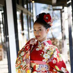 一昨年、昨年と赤い晴れ着を着て、今年は乃木坂46の白石麻衣と同じコーディネートだという白い晴れ着姿を披露した岡田さんは、「こっち(飾りが付いているほう)から見るとかわいくて、こっち(付いていないほう)から見ると大人っぽいという、角度による違いが出せるので気に入っています」とお気に入りだという髪飾りを紹介した。