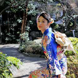 今年で3年連続の参加となる高尾さんは、一昨年がピンク、昨年が水色の晴れ着を着たそうで「深緑というのがすごく大人っぽい。でもその中でお花の柄が華やかなので、そこがすごくお気に入りです」と今までとは違う大人っぽい雰囲気に満足気な様子。