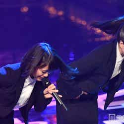 「就活センセーション」をパフォーマンスしたつばきファクトリー。最優秀新人賞が発表されると、メンバーは感極まった表情を浮かべた。リーダーの山岸理子は「私達はメジャーデビューするまでに時間がかかったのですが一生に一度しか獲ることができない最優秀新人賞をいただけて嬉しいです。これからもっともっと大きなグループを目指して頑張るので応援してください」と喜びを伝え、小片リサは「夢のような時間で…。メンバー皆で夢をかなえることができて本当に嬉しく思っています」と言葉をつまらせながらコメント。