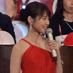 昨年に続き2年連続で紅組司会を務める有村。30日は、デコルテと足元が透けた刺繍柄のドレスで登場。ヘアはゆるく巻いたダウンスタイルで。その後、デコルテや背中の肌見せがセクシーなワンショルダーの赤ロングドレスにチェンジ。髪をアップにし、動く度にキラキラと揺れるイヤリングもゴージャスな印象だ。