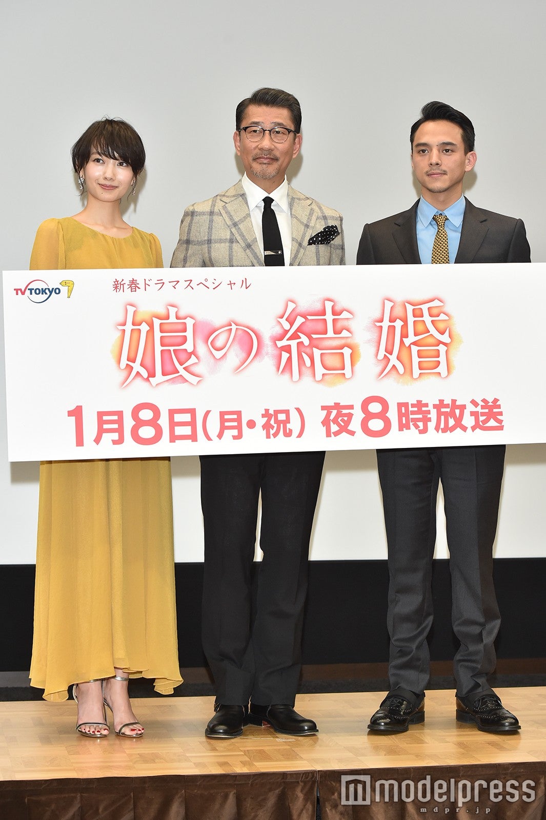 女優の波瑠が5日、東京・六本木のテレビ東京新本社で行われた新春ドラマスペシャル「娘の結婚」(同局にて1月8日よる8時)の記者会見に、共演の中井貴一、満島真之介とともに登壇した。
