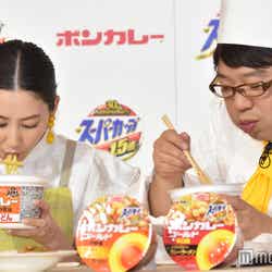 今回結成された新ユニット“キャリ~ン”として登場した河北と天野。河北が「今日はコンビということで、ウド(鈴木)ちゃんに負けないように、いいコンビ感を出したいと思います」と意気込みを語ると、天野は「まず(決められた立ち位置)に立てる時点でウドちゃんに勝っています!」とコメントして、会場を沸かせた。