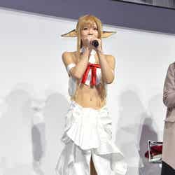 また、この日のコスチュームのこだわりについて、「普段は付け耳をしないので、付け耳だったり、後ろもリボンが付いておりますので、全体を見て楽しんでいただければなと思います」と紹介。そんなえなこをニヤニヤと見ていた足立は「私、かわいい女の子が大好きなんです。フィギュアもどちらかというと女性も多いですよ。だから変な目で見ていたらごめんね」と先に謝っていた。(modelpress編集部)