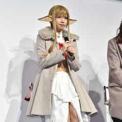 同作の公式コスプレイヤーであるえなこは、肌を露出したコスプレ姿で登場。壁がない半屋外のイベント会場だったこともあり、足立と吉田アナから「寒くないですか?」と心配されると、「寒いですよ!だって室内って聞いていたんですけど…。屋根があるから室内ですね」と吐露。吉田アナウンサーから「千代田区の外の気温は3℃ですよ」と明かされると、「コスプレイヤーは、冬コミとかでもお外でこんな感じのコスプレをすることもあるので、寒さには強いかなと思っております」とプロ根性を見せた。また、この日のコスチュームのこだわりについて、「普段は付け耳をしないので、付け耳だったり、後ろもリボンが付いておりますので、全体を見て楽しんでいただければなと思います」と紹介。そんなえなこをニヤニヤと見ていた足立は「私、かわいい女の子が大好きなんです。フィギュアもどちらかというと女性も多いですよ。だから変な目で見ていたらごめんね」と先に謝っていた。(modelpress編集部)