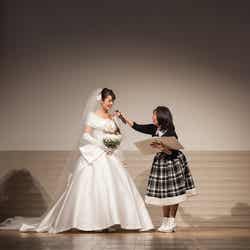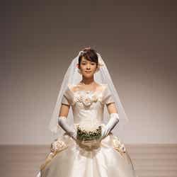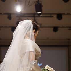 昨年11月、同ホテルで挙式をした藤澤は特別ゲストモデルとして出演し、観客160名のプレ花嫁たちを魅了。ショーでは、自身の結婚式でも着用したオートクチュールで創られた清楚な純白のウエディングドレスと、胸元などに施された繊細なレース使いや上品なバラのモチーフが特徴的な新作ドレスの2着を披露した。