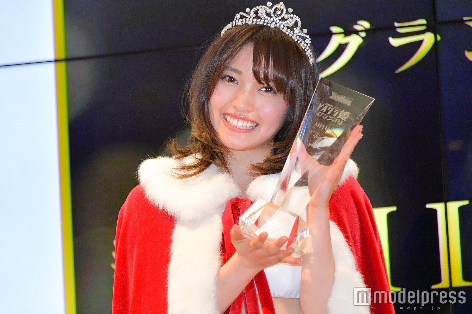雑誌「ヤングアニマル」の表紙を飾る1名を決めるオーディションで、約100名の中からグランプリを獲得し、“次世代グラビアクイーン”に輝いたMIYU。CHERRSEEのメンバーには、暗い雰囲気を醸してからドキッリ的に報告したそうで、「飛びついてきてくれたり、泣いて喜んでくれてたり、すごくメンバーの愛を感じました」と嬉しそうに語った。その後、授賞式では得意のダンスを披露して会場を沸かせたMIYU。今後の目標を聞かれると、「CHERRSEEを多くの人に知ってもらいたくて始めたグラビアなので、これからもCHERRSEEの活動をメインに頑張りながらも、個人の活動も幅を広げて頑張っていきます」と意気込んだ。
