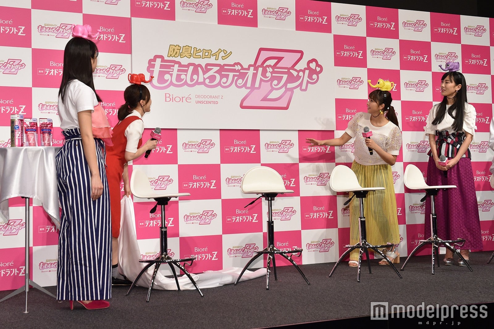 さらに、“防臭ヒロイン”というネーミングについて百田は「常日頃からいい匂いでいないとって気持ちにもなってきますね」といい、高城も「メンバー同士で、私たち人一倍汗をかくので、制汗剤のCMやりたいねって言っていたんです」と目を輝かせた。制汗剤を1番使うメンバーを尋ねられると、玉井は「れにちゃんは年中、常に気にしています」といい、百田は「女子力が高い。その部分だけ」と高城を絶賛した。