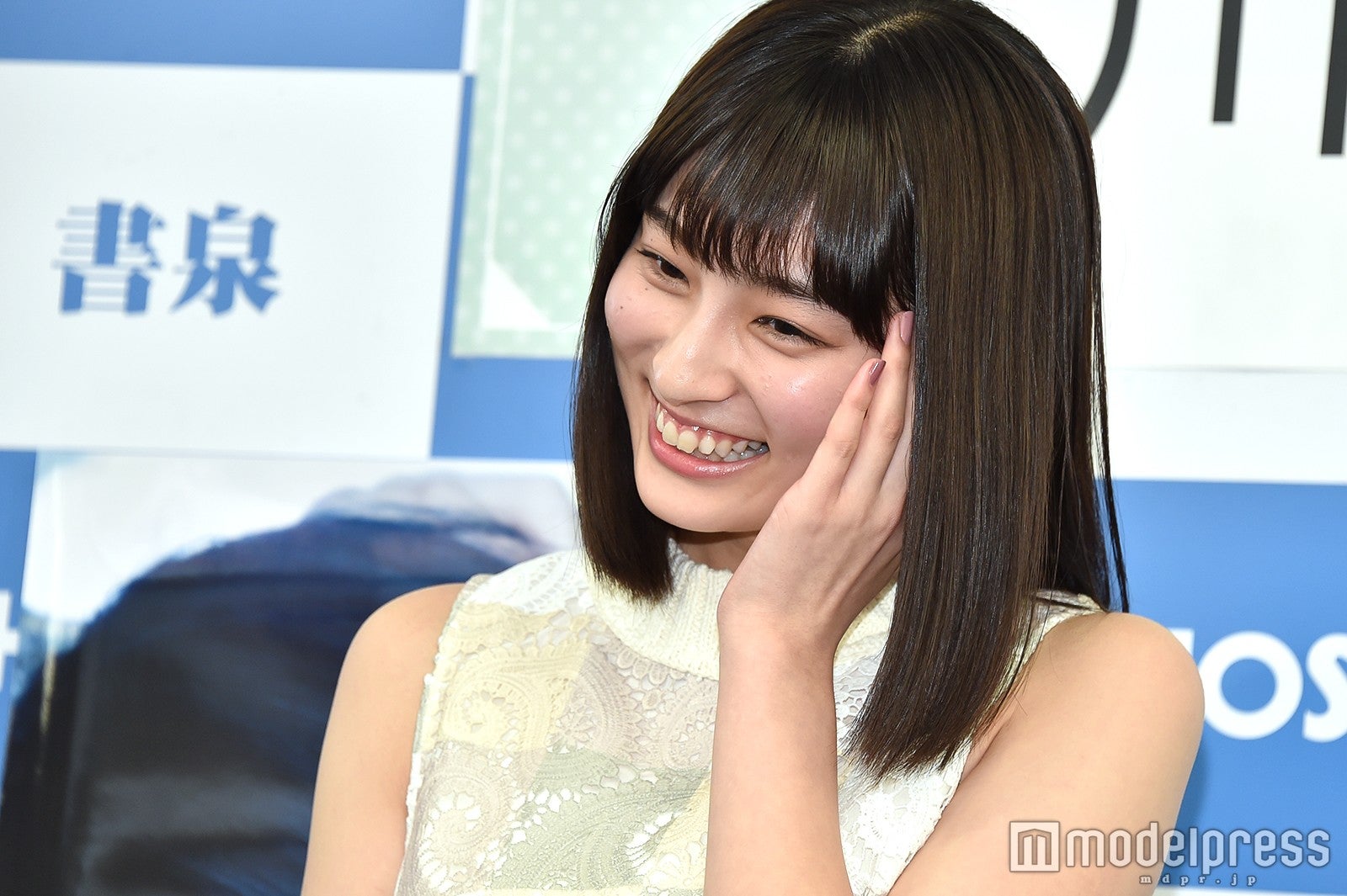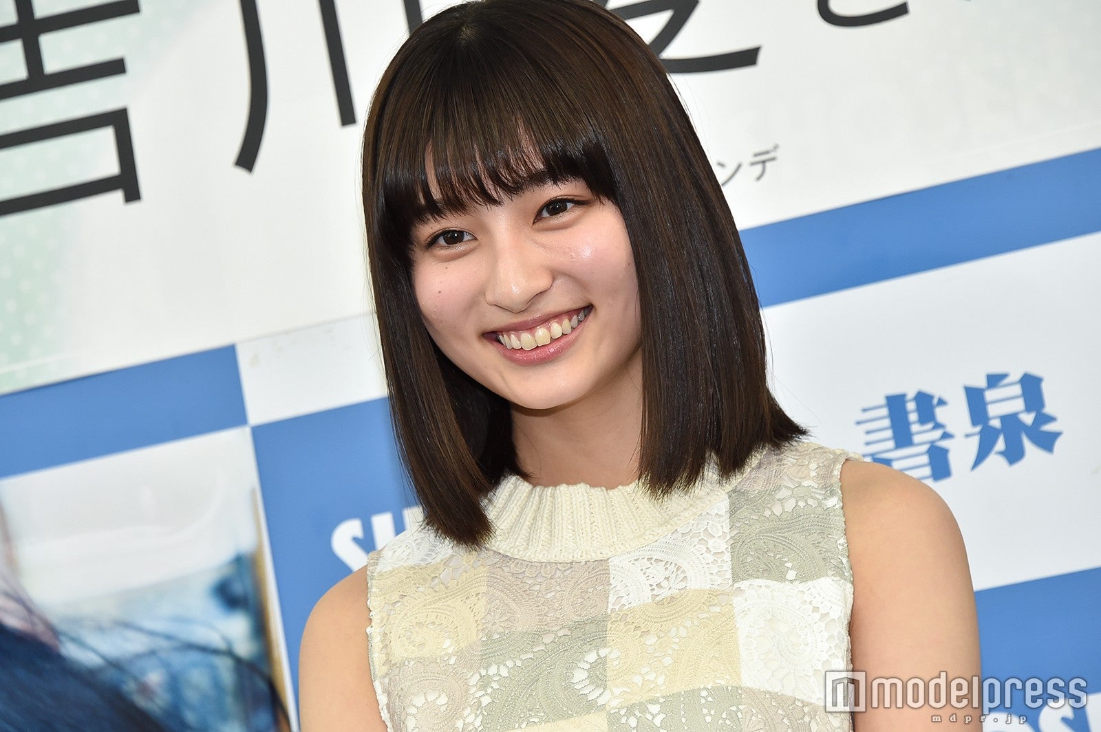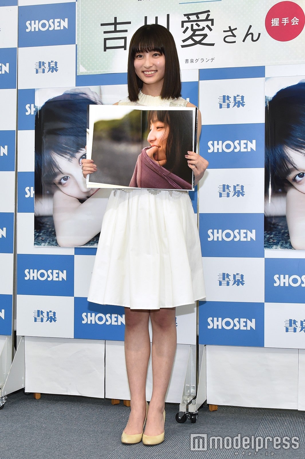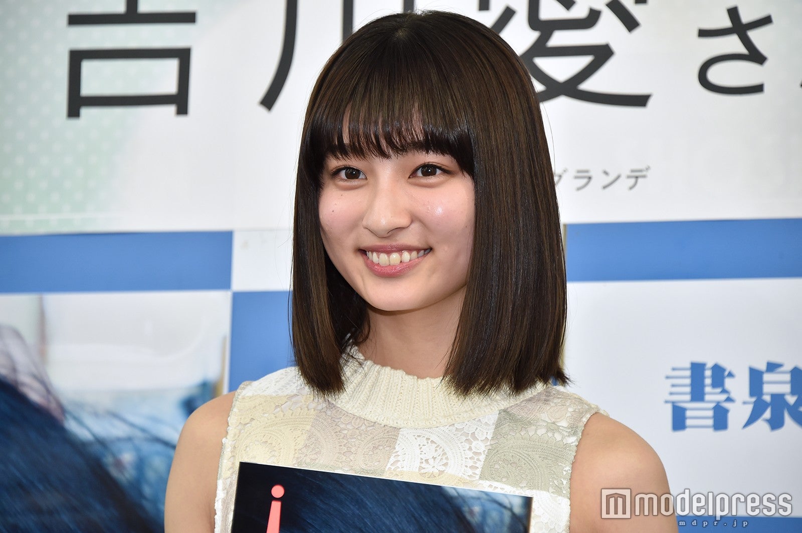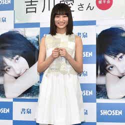 吉川は、完成した写真集を見て「清楚系で、いろんな私の表情が撮れていて、すごくいい写真集になったなと思います」と満足気な表情。お気に入りには横顔のカットを挙げて、「横顔が自分ではあまり好きじゃなくて、なぜかと言うと、私は鷲鼻(わしばな)なんですね。それがイヤだったんですけど、私が初めて横顔で1番いい写真だなと思ったのはこれだったので、この写真を選びました」と選んだ理由を説明した。