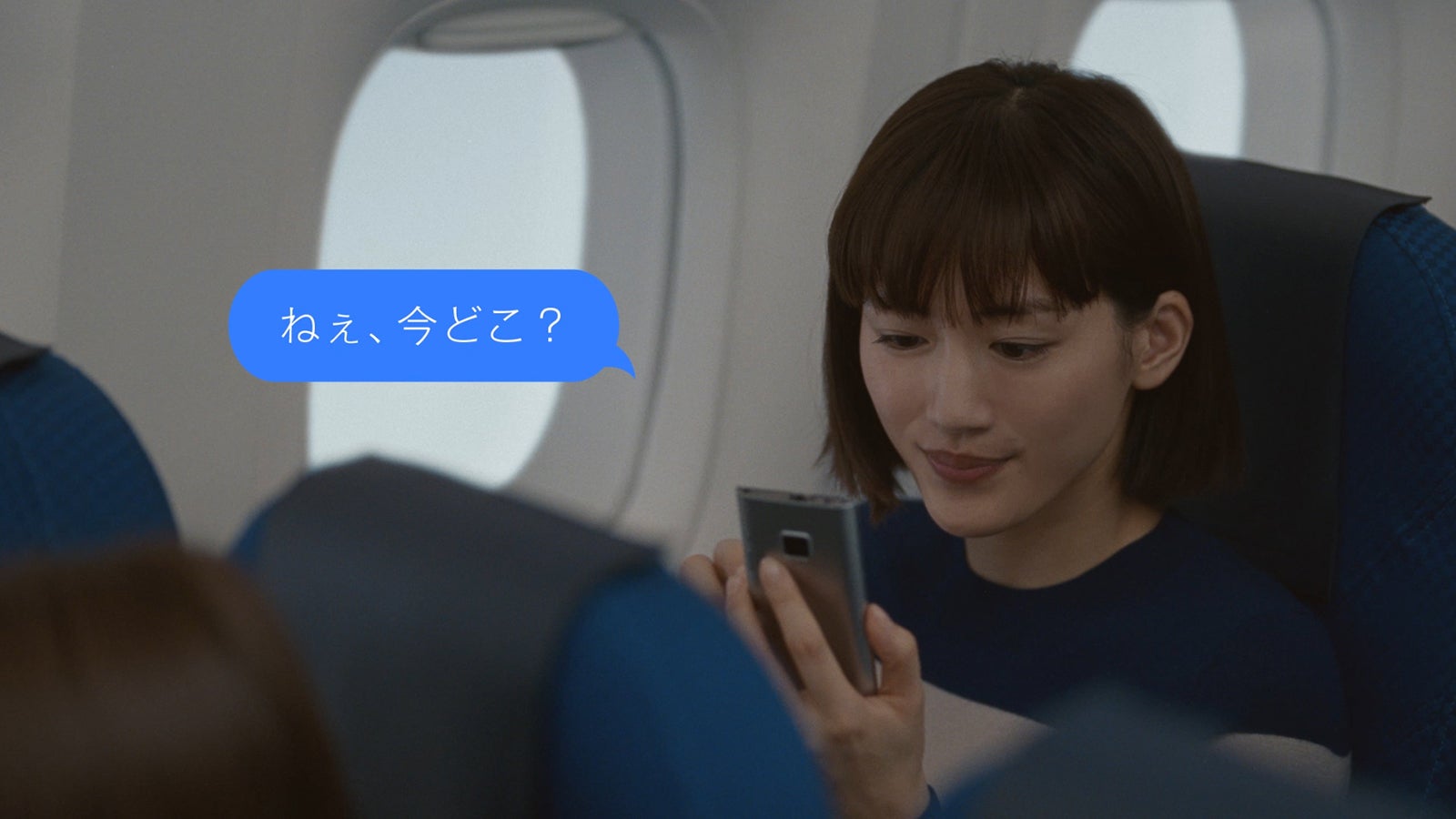 綾瀬はこの日、新サービスの魅力を伝えるCA(=Communication Attendant)に就任し、本物のANAのCAの制服を着て登場。吉沢から「とても素敵です。CMの撮影の時とは雰囲気が違ってお似合いです」と褒められた綾瀬は「ありがとうございます」と照れながらコメント。CMで演じる、好奇心旺盛な女性像との共通点を問われると「あると思います。チャレンジする新しいスポーツとか、ハマってしまうとできるまでやりたくて」と語った。