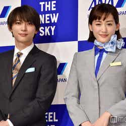 綾瀬はるかと吉沢亮が19日、都内で行われたANAの新CM発表会に出席した。
