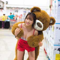 今回はスキー&温泉という冬デートの定番で撮り下ろし。真っ白なゲレンデでは、寒さも吹き飛ぶビキニ姿で元気いっぱい。一方、温泉では浴衣姿も披露しており、豊満バスト×火照った肌がセクシー。キュートとセクシー、久松の2つの顔が堪能できるグラビアとなった。
