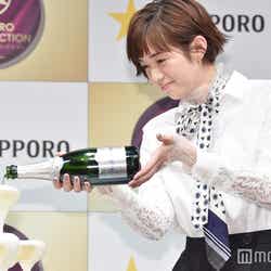 イベントでは、佐藤自身、人生初挑戦というシャンパンタワーを披露する一幕もあり、シャンパンを注ぐ前に意気込みを聞かれると「まずは私、初体験で、テレビとかでしか見たことがなかったので、まずこのキラキラ加減に感動しています。失敗しないように頑張ります(笑)」と笑顔。「本当に合ってます?結構ありますね」と戸惑いながらもボトルのシャンパンを注ぎ終えると、MCから「初めてとは思えないほど上手だった」と褒められ「ありがとうございます。私まで元気になりました!」と感激していた。