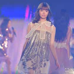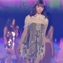 八木は首元のリボンが特徴的なチュールにスパンコールの装飾が施されたミニ丈ワンピース姿で登場。ゴージャスな装いで美脚を披露し、観客の視線を集めていた。