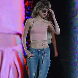 ステージ先端では、サングラスを外して、ウインクを飛ばすと、観客からは歓声が。ほっそりとしたウエストに会場中の視線が釘付けになっていた。