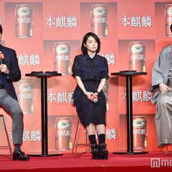 女優の井上真央が12日、都内で行われた新CM発表会に、俳優の江口洋介、歌舞伎俳優の松本幸四郎とともに出席した。