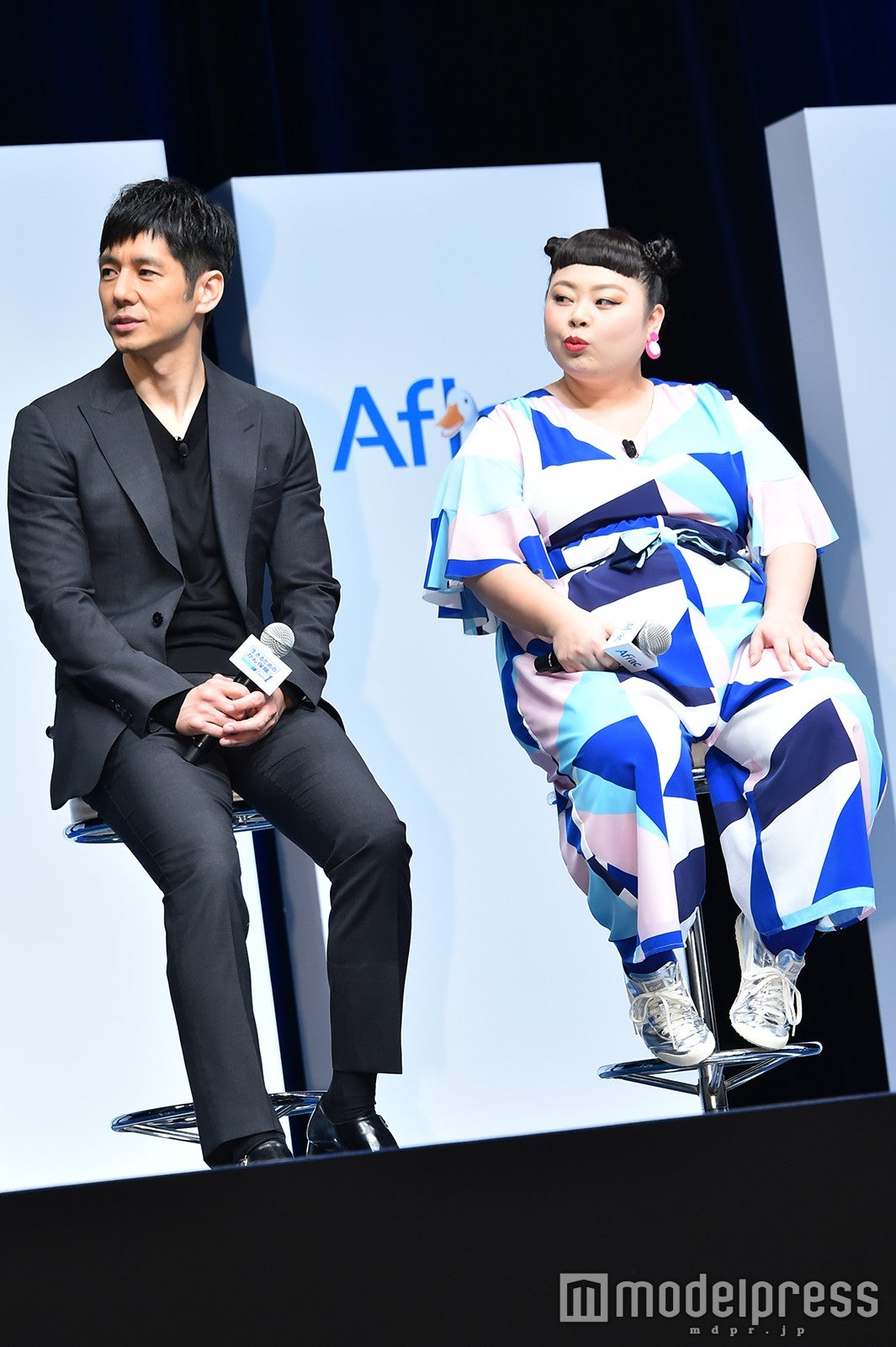 俳優の西島秀俊とお笑いタレントの渡辺直美が14日、都内にて行われたイベントに嵐の櫻井翔と女優の松岡茉優とともに出席した。