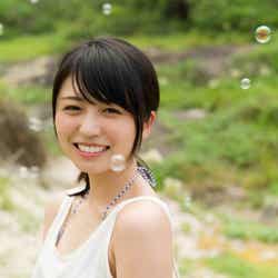 これを記念して今回、写真集未収録の幻のカットが到着。長濱が青いギンガムチェックの水着に白いタンクトップを着て微笑む、健康的な美肌がまぶしい1枚となっている。