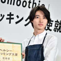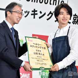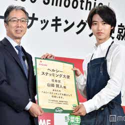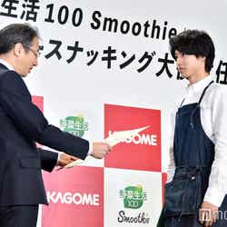 俳優の山崎賢人(※「崎」は正式には「たつさき」)が19日、都内で行われたカゴメ「野菜生活 100 Smoothie」ヘルシースナッキング大使就任式に登壇した。