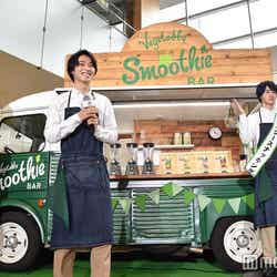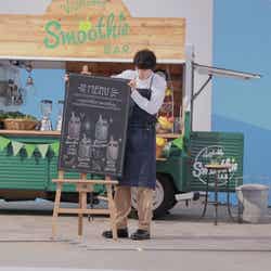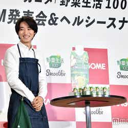 昨年に続き山崎がスムージーバーのマスターを演じる新CMが20日より順次放映開始。「何回もご一緒させていただいているチームで撮影だったのですごく楽しくやらせてもらいました」と振り返り、「撮影でキウイを包丁で切った時にまな板にストンと落ちてほしかったんですけど、なかなか包丁にくっついて離れなくて」と苦戦したことも。朝食でスムージーを摂るなど、自身もバランスの良い食生活を心がけているといい「健康管理は大事。体を壊したら何もできないので、より一層気を使っていきたいなという風に思います」と意気込んでいた。