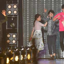 クールなラップで会場を沸かせると、HIKAKIN、かわにしみき、さぁや、関根りさ、ボンボンTVもステージに集合。HIKAKINらは客席にTシャツを投げ入れるパフォーマンスで会場をさらに盛り上げ、豪華ステージを届けた。