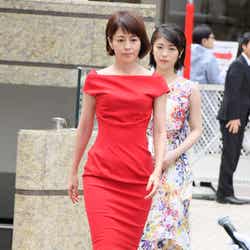 マイクを持った沢口は「今日は、進化した“新・ゴジラ”に会えるのを楽しみに参りました」と、浜辺は「お天気が昨日から心配だったのですが、楽しみにしていました。ギリギリ、晴れになってよかったなと思います」とあいさつ。