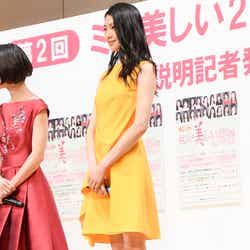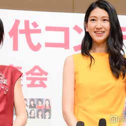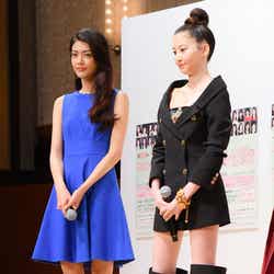女優・剛力彩芽と、モデル・河北麻友子が22日、都内にて開催された「第2回ミス美しい20代コンテスト」概要説明記者発表会に田中道子、是永瞳とともに出席した。