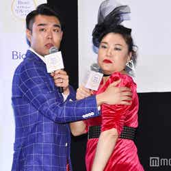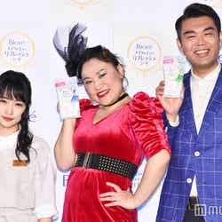 オシャレ居酒屋に見立てた取材会場には、お客さんとしてフォーリンラブのハジメとバービーが来店。川栄は手を大きく振りながら、バービーに新発売のスキンケアアイテムを勧める「メイクの上からいっちゃって!」という“コール”を披露。キュートな姿で報道陣を魅了した。