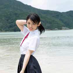 撮影では制服姿のまま、海遊びを楽しんだという長濱。濡れた髪を自らの手で束ねてポニーテールにしており、青春の甘酸っぱさが詰まった1枚となっている。