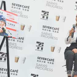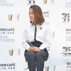 平昌五輪のノルディックスキー・ジャンプ女子で銅メダルを獲得した高梨沙羅選手(21)が29日、東京・六本木ヒルズにオープンする自身の写真展カフェ「SARA'S PROGRESS」のオープニングイベントに出席。競技中のイメージとは異なるカフェ店員風の衣装で登場した。