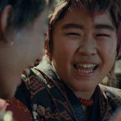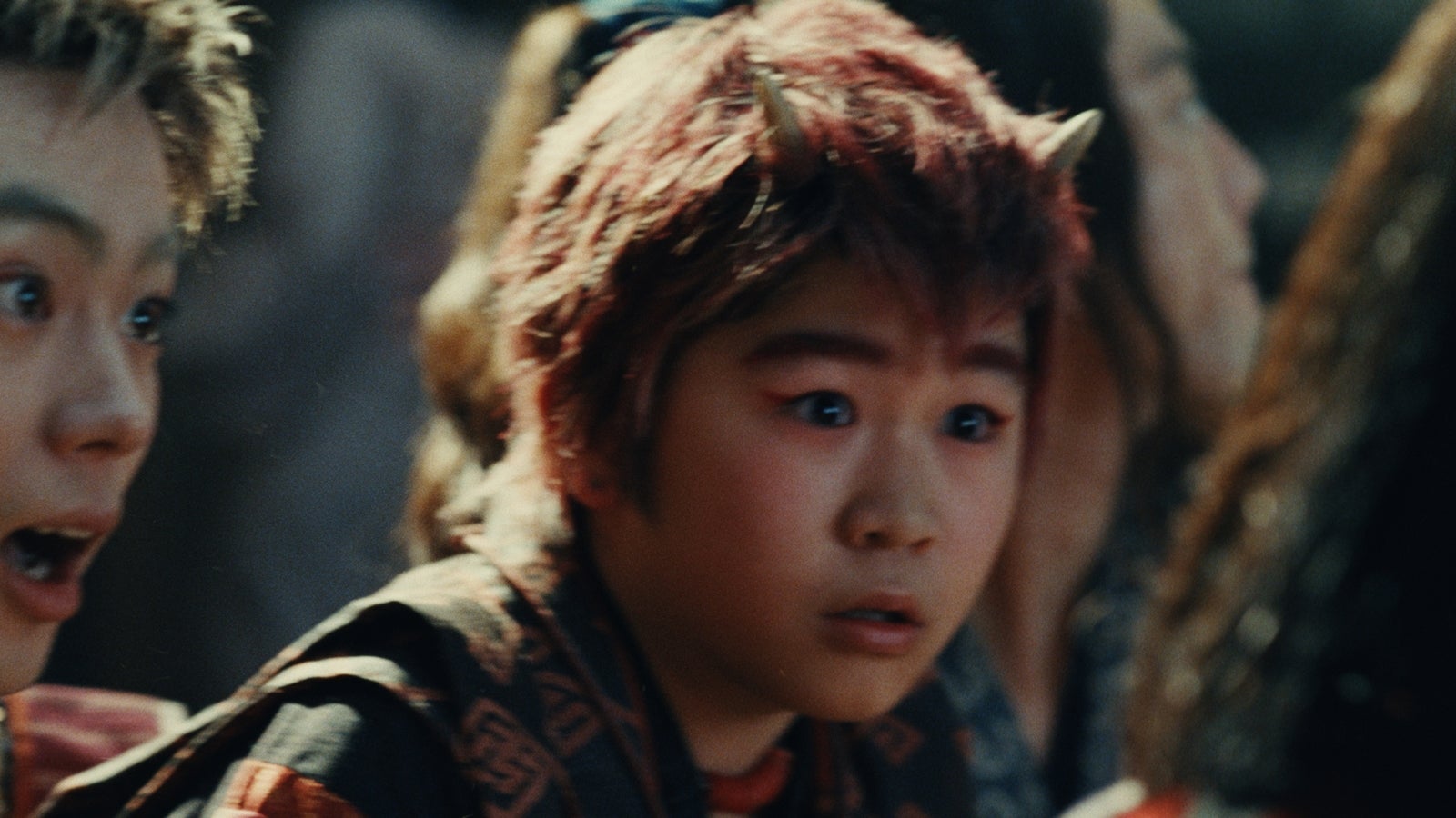 新CMは、鈴木福演じる赤鬼の初恋の相手が金太郎によってバラされてしまうストーリー。放課後、あやとりをしている三太郎と赤鬼のもとに「おい赤鬼~!好きな子できたんだって~?」と父・鬼ちゃん(菅田将暉)が駆け寄ってくる。